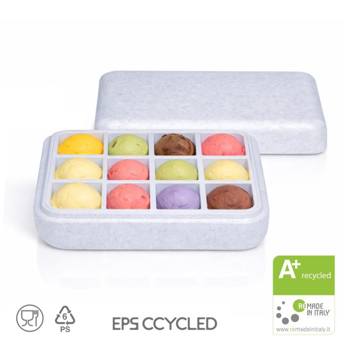 12 compartment ice cream container with lid. Made of STYROPOR® CCYCLED® Color: Blue-ice.