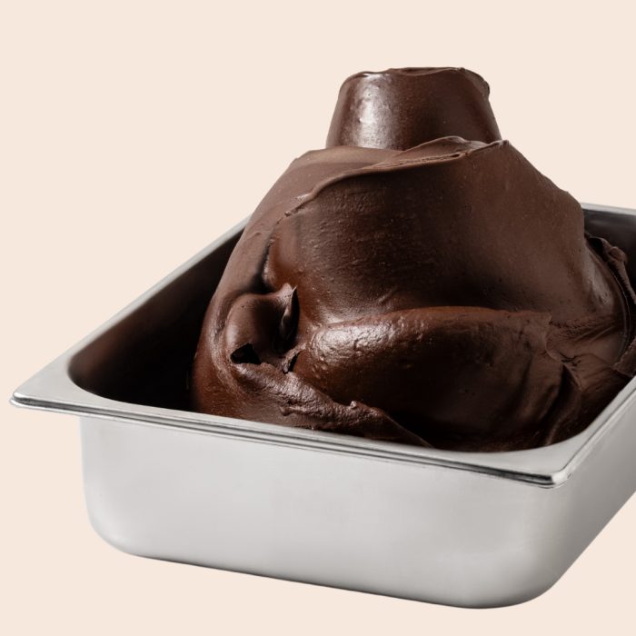 Powdered product for preparing a rich, refined chocolate gelato, enriched with low-fat cocoa powder and dark chocolate chips made from cocoa mass from the Dominican Republic.