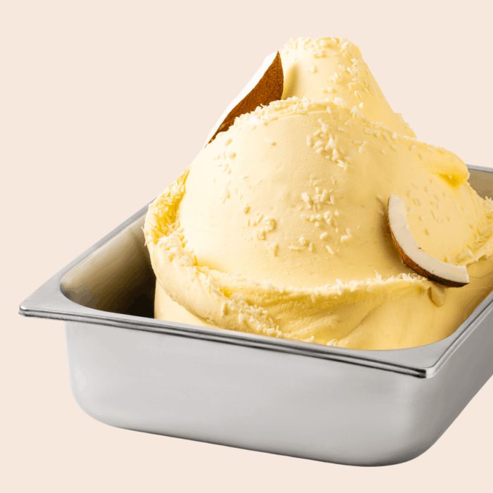 With dehydrated concentrated yuzu and lemon juices, desiccated coconut and powdered coconut cream, Yuzu, Coconut and Lemon is a ready-to-use powdered product suitable for both artisanal gelato making and food service.