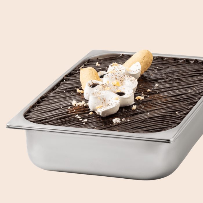 Tiramisu-flavoured rippling sauce, with a soft and enveloping cream reminiscent of the classic Italian dessert, enriched with with gluten-free sponge cake crumbs, low-fat cocoa powder and soluble coffee for an intense and bold aroma.