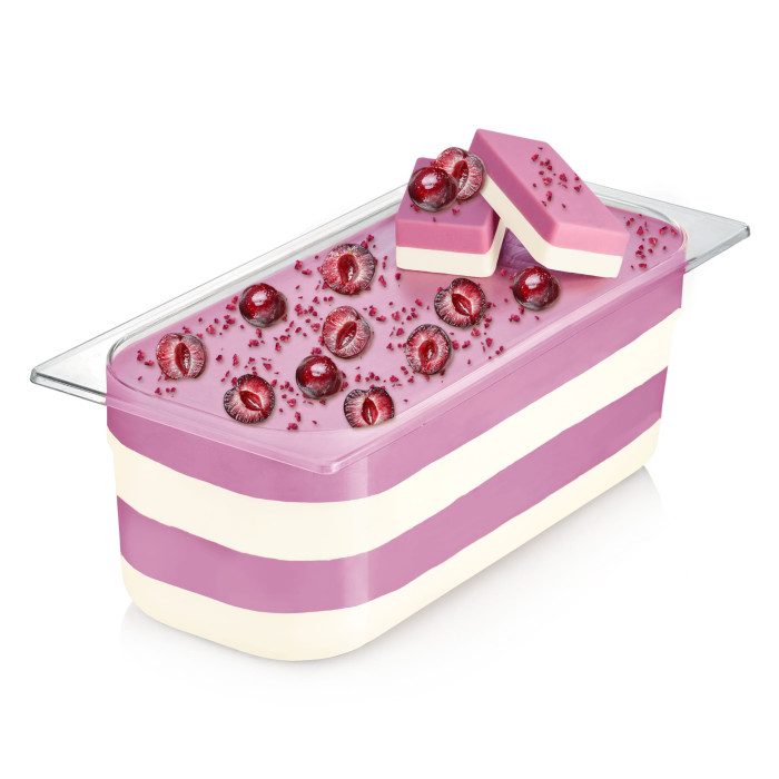 Fluid paste with sour cherry flavor enriched with crunchy inclusions, designed to recreate the famous croccantino all’amarena. Ready to be poured directly into the tub and frozen as is, or used for variegating gelato.