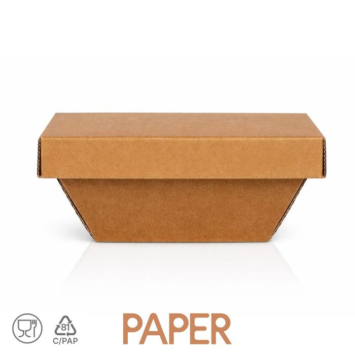Simple yet powerful! Made entirely of cardboard, it features an air gap in the base that retains the cold, essential for preserving gelato during transport. Its shape is sturdy, and the material is easy to customize.