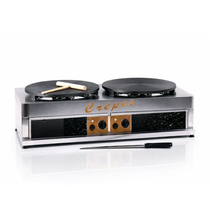 Crepiera professionale doppia, alimentazione a gas diametro 40 cm. - Piano in ghisa.